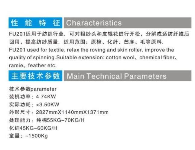 FU201型粗紗頭開松機(jī)(針板開松)的產(chǎn)品詳細(xì)介紹: