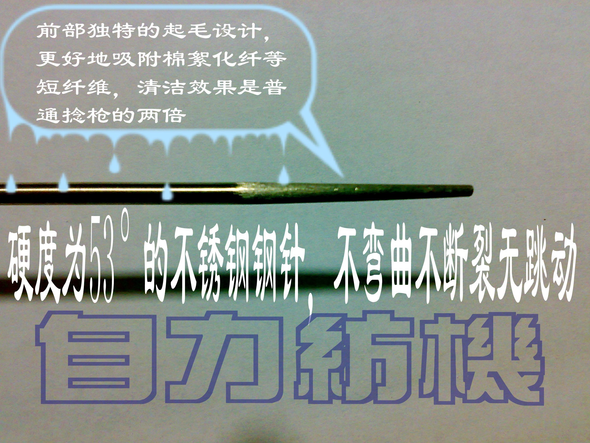 (6)鋼針全部滲碳處理.硬度大.不彎曲,不斷裂。在原來的基礎(chǔ)上加大了直徑減少變形彎曲的機(jī)率,避免了易跳動(dòng)的毛病.鋼針長度增加了30mm,更加適合細(xì)紗機(jī)清潔的需要!~